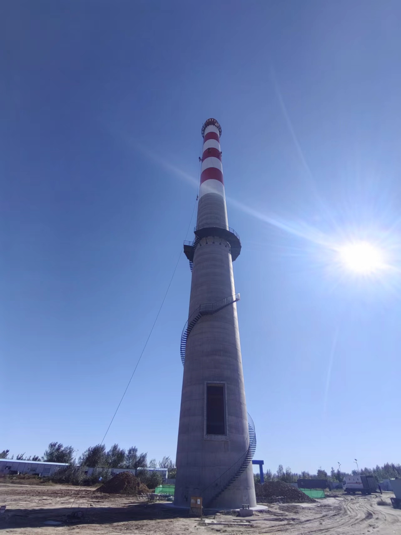 - 混凝土煙囪新建該混凝土煙囪新建工程的特殊性,在安全、快捷、方便的目標下,根據本公司現場考察,依托本公司雄厚的技術實力和豐富的高空作業的經驗,結合施工現場復雜的施工環境特制定如下施工方案